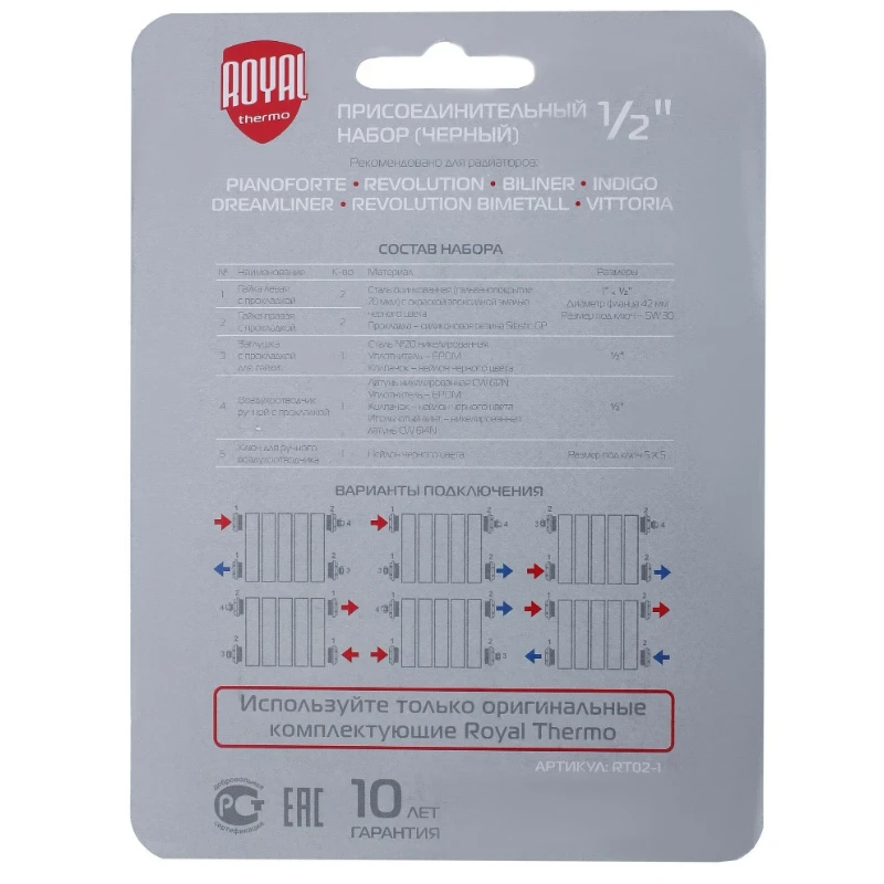 Описание Комплект универсальный для радиатора Royal Thermo 1/2'' black без кронштейнов: