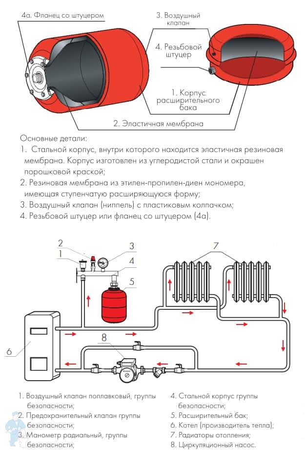 - Бак исключает контакт теплоносителя с воздухом